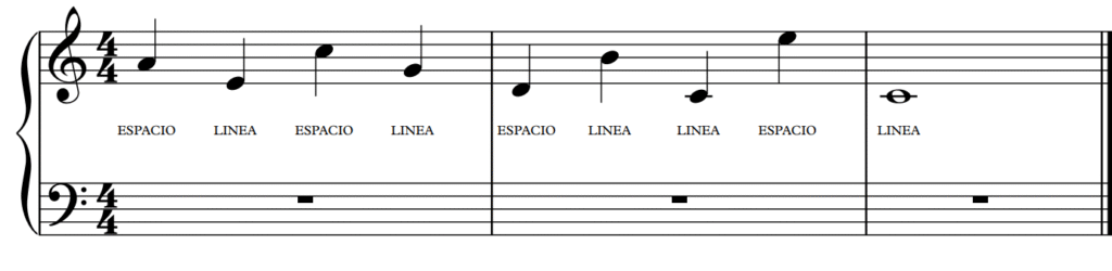 “Notas ubicadas en línea y espacio dentro del pentagrama. Se alternan para representar la sucesión de alturas”.